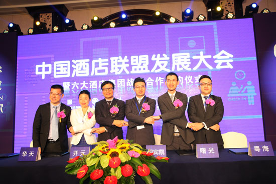7月6日,城市名人、华天、开元、纽宾凯、曙光、粤海六大酒店集团在北京开元名都大酒店签署战略合作协议,六方共同宣布成立酒店联盟体,创新提出联盟体独立运作平台,在会员共享与联合订房两个方面展开深度合作,为各方会员提供全方位的线上线下服务,共同打造酒店联盟全新时代。