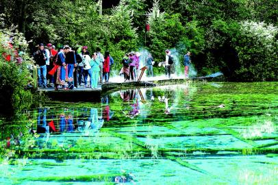 7月17日,随着当日33285人次旅游接待量的最终确定,九寨沟景区迎来今年的首个旅游接待高峰。截至当日下午6时,九寨沟景区2015年已接待游客2013022人次,同比增加17.80%。图为游客在五花海观景、拍照。 刘彦荣 摄