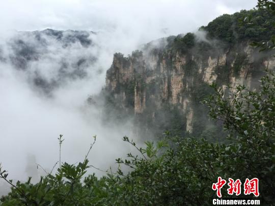 7月23日,一场大雨过后,湖南张家界核心景区武陵源出现时隐时现的云海景观,“美呆”中外游客。