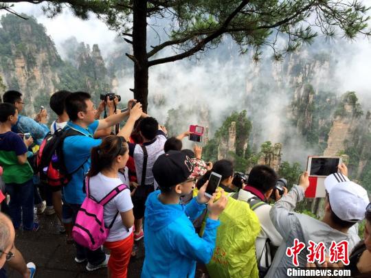 张家界武陵源云海仙境"美呆"游客。 吴勇兵 摄