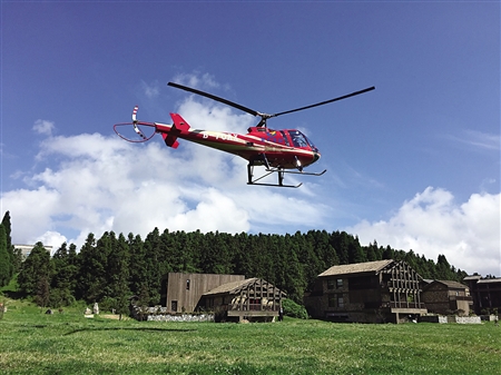 昨日,恩斯特龙直升机在仙女山降落。 记者 张凯 摄