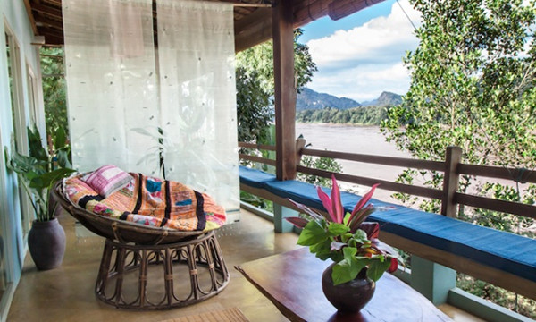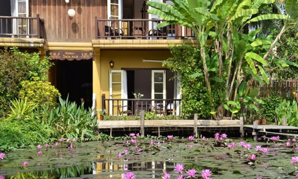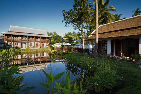 这里是逃离琅勃拉邦街道喧嚣吵闹的“伊甸园”。木板桥蜿蜒着穿过满是鱼儿的荷花池。池塘后的26间客房设有雕刻镂空的木质大床,地上铺有橙绿色的地毯,墙上挂有五彩丝绸的高雅卷轴,走廊中以精美的古董为装饰,包括充满风韵的大喇叭留声机。就餐区是在开满粉红色花朵的鸡蛋花树环绕下的桥板上,为可口的食物更添独特风味。