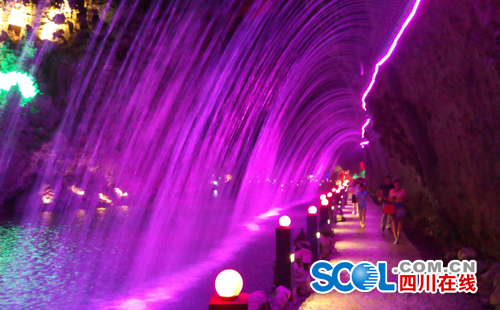 对天泉洞的灯光进行了升级改造,打造长廊水幕、激光隧道、3D投影、电脑灯光四个项目,进行了声、光、电各方面的展示,使景观更好地展现给游客。
