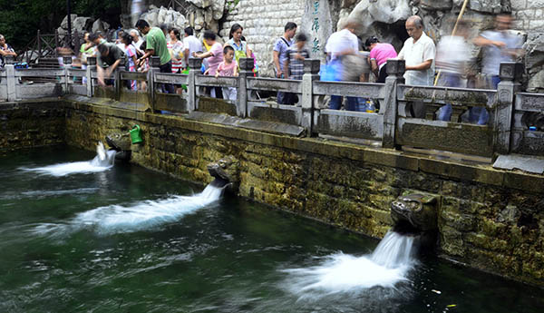 8月26日,游客在山东省济南市黑虎泉景区游览。