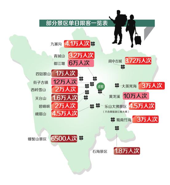 除了发布“限客令”,四川部分景区在黄金周到来前提前给市民打“预防针”,比如由于闭门打造和重建,眉山的瓦屋山和三苏祠将闭门谢客。不过毗邻的其他景区,如彭山彭祖山、仁寿黑龙潭、洪雅柳江古镇、青神中岩寺、丹棱老峨山等景区,可以敞开耍。