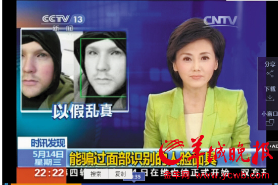 人脸面具:关于人脸识别系统的不稳定性,央视曾做过一期节目。主持人举例称,来自美国芝加哥的一名艺术家做出了能骗过面部识别的人脸面具。人脸面具由树脂材料制成,3D打印机打印。由于很多监控机构使用同一个面部识别数据库,那么大家在戴上面具之后,就可以避开公共场所的人脸监控。(记者 章琰)