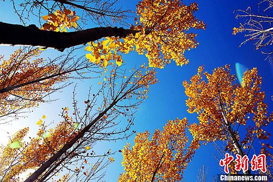 10月下旬深秋时节,甘肃张掖大地上悄无声息落下的树叶,划出一道道优美而深邃的弧线,使得处处层林尽染,斑斓妖娆。赵琳 摄