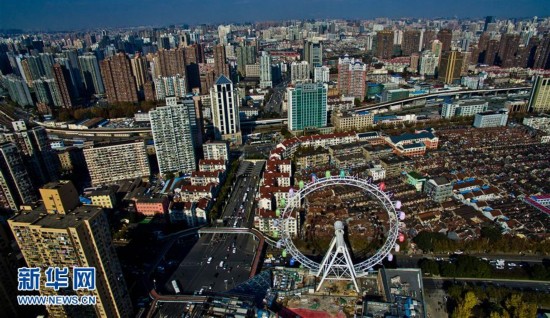 这是12月8日航拍的位于上海苏河湾的屋顶摩天轮。据了解,该摩天轮位于上海新静安大悦城屋顶上,为申城首个屋顶摩天轮。摩天轮共有30个轿舱,每个轿舱可乘坐4人,能俯瞰苏州河两岸和浦江风景,将于圣诞节前夕正式启用。新华社发