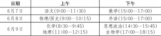 “3+1+2”科目考试时间