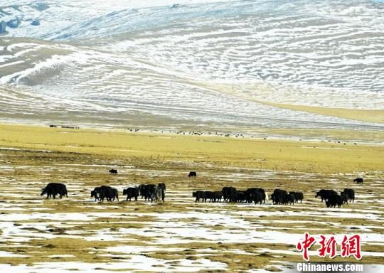 图为“春雪牧歌图”中成群结队的牦牛。牛志恩 摄
