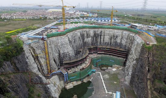 “深坑酒店”选址在旧矿场形成的深坑,建成后酒店将拥有370间客房,包括地上两层、地下17层和水下两层。(文/图 新华社)