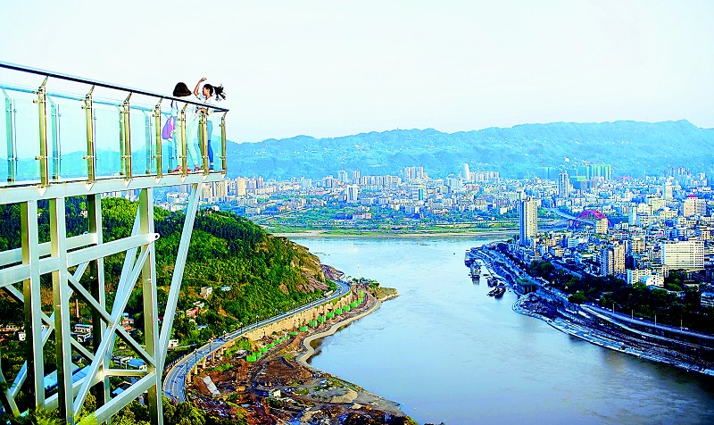 川内首个城市山地眺望观景平台——宜宾催科山玻璃栈道观景平台近日对外开放。该平台长10米、宽1米,高度落差达到185米,直接延伸到悬崖边。平台开放以来吸引了众多游客远眺宜宾江北、老城区和南岸,饱览宜宾三江六岸怡人美景。本报记者 何海洋 摄