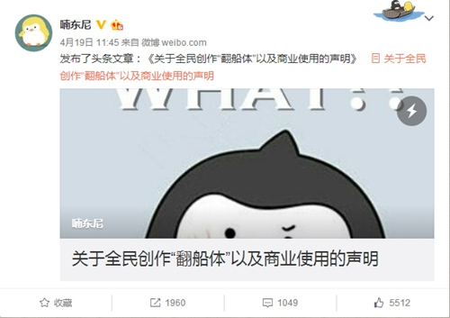 半个多月的时间内,喃东尼和他创作的“翻船体”漫画火了:对生活琐事的小吐槽,被喃东尼加以文字上的幽默“改装”,配上两只胖胖的小企鹅,几乎是一夜之间刷爆了微信朋友圈。很快,这条“友谊的小船”翻到了“媒体圈”、“公关圈”等,衍生出了各种版本。