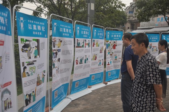 四川在线泸州消息(葛倩 陈茂)8月26日,玄滩镇在高升桥广场开展党风廉政建设“以案释纪”漫画巡展活动。