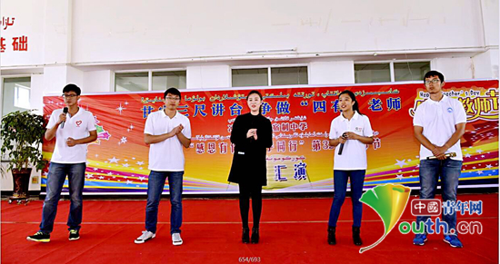 东北大学研究生支教团成员在庆祝教师节上表演节目。李欣妍 供图