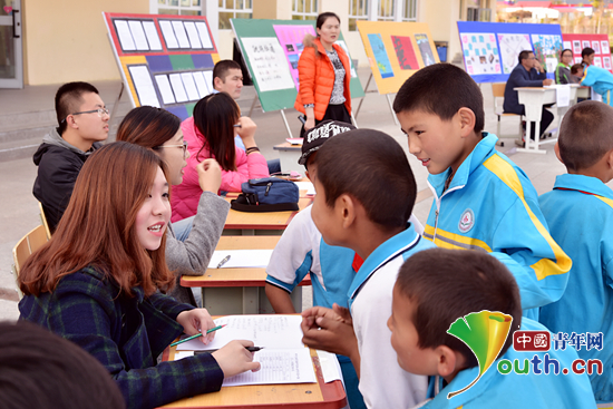 东北大学研支团在冲乎尔镇寄宿制中学校园进行社团招新。图为招新现场。李欣妍 供图