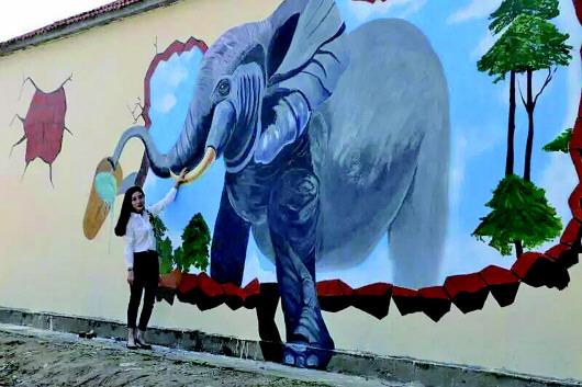 “十一”和花博会期间,店子张村的3D墙绘吸引了不少游客。(资料片)