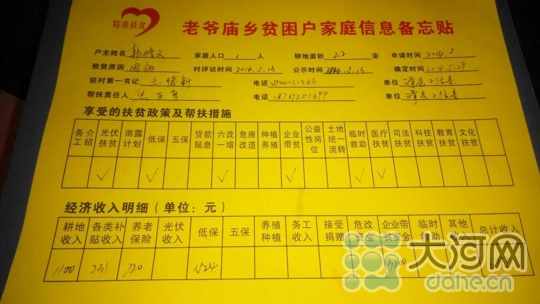 滑县老爷庙乡的精准扶贫卡