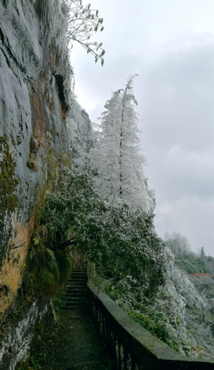四川在线泸州消息(苏忠国 姜永宁)近日,泸州市叙永县丹山景区一片银装素裹。连日的低温雨雪天气让叙永丹山景区的景色变得格外迷人,雪后的丹山银装素裹,分外妖娆,吸引了不少市民前往观赏拍照。