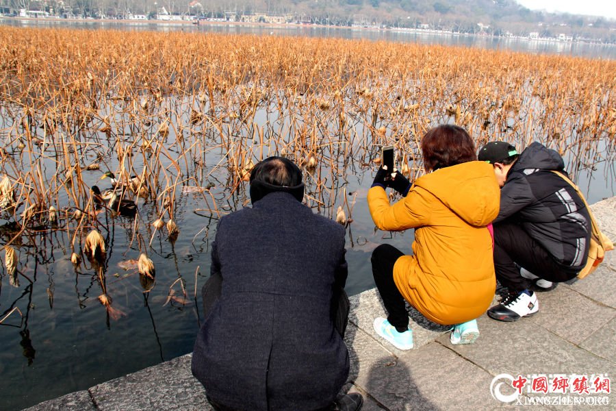 1月13日,杭州天气晴好,几只野鸭子在西湖游荡,吸引游客驻足观赏拍照。(浙江在线拍友 柱子 摄)