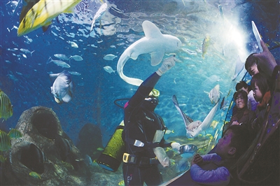 6日,南京海底世界内,市民感受梦幻般的海底长廊、海豚表演。新华报业视觉中心记者 万程鹏摄