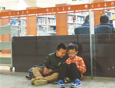 假期里的南京图书馆,小朋友席地而坐快乐地阅读。新华报业视觉中心记者乐 涛摄