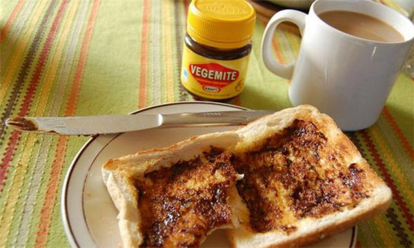Vegemite是澳大利亚家喻户晓的一种酱料,据说还是澳大利亚饮食文化最著名的象征,它富含维生素B,味道咸中带微苦,颜色与巧克力酱一样呈深棕色,堪称澳大利亚人早餐桌上的主角。