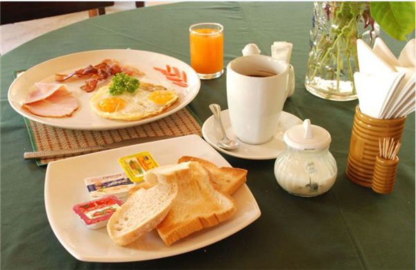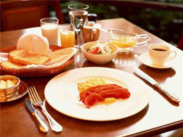 培根是美国人早餐桌上出现频率非常之高的食物,除此之外,Pancake、煎蛋还有谷类也同样受欢迎。