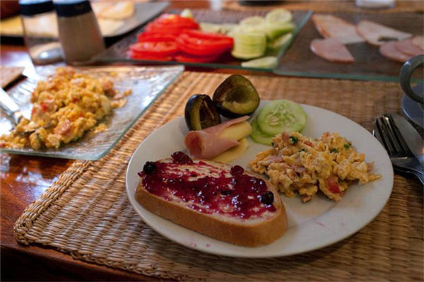 新鲜出炉的面包、各种软硬乳酪、果酱和黄油都在以色列的早餐里,口感丰富,营养均衡。