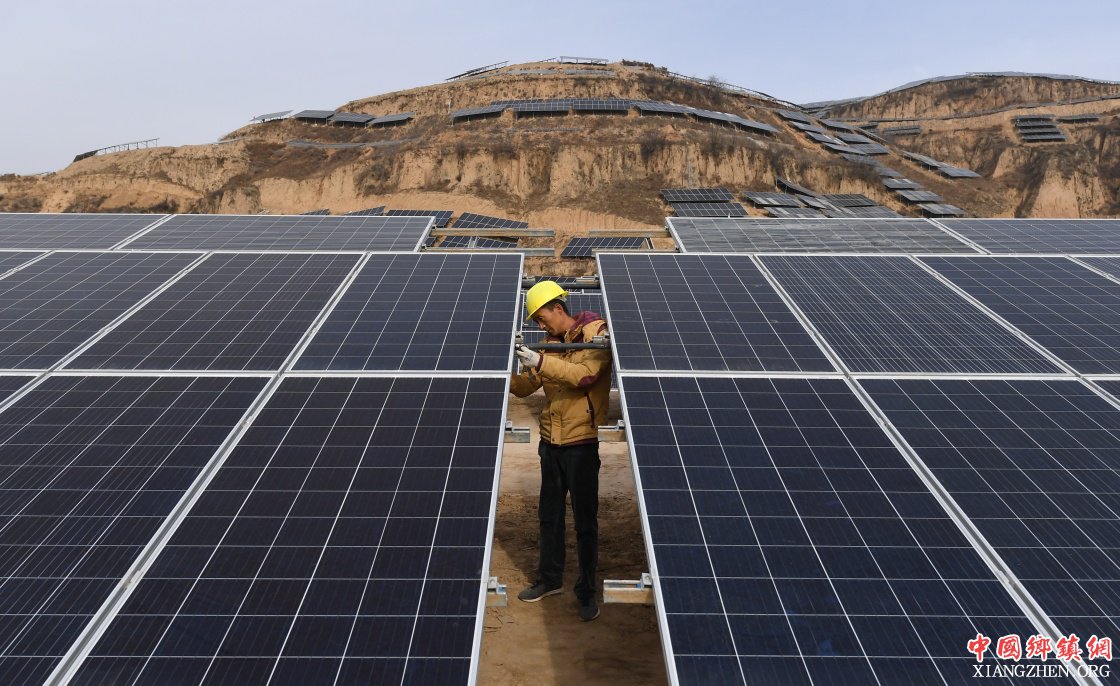 11月7日,工作人员在陕西绥德义合镇霍家坪村光伏扶贫多村联建电站进行检查。