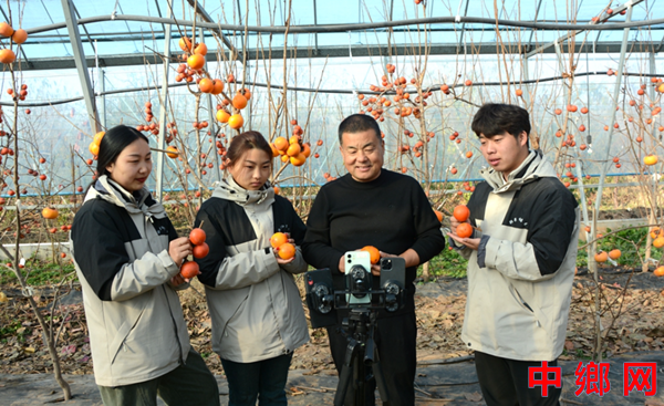 11月22日,河南省内黄县田氏镇郑小屯村党支部书记郑国忠(左三)和村00后返乡大学生张寒、张志薇、张雨蒙正在村智能甜柿子大棚种植基地内现场直播销售新品种太秋甜柿子。近年来,该村党支部以党建为引领,以“党支部+合作社+农户”的形式,通过调整农业种植结构和培育“新农人”,大力发展果树产业种植。通过引进“太秋甜柿、丽玉甜柿、辉太郎甜柿”等优质新品种,并积极推广新技术和种植水肥一体化技术,不仅提升了果实品质和产量,也增强了市场竞争力。郑国忠从“土专家”成长为技术带头人,其创办的国中果树研究所成为集科研、示范、推广于一体的平台,实现了“经验农业”向“科技农业”的跃升。打造“一村一品”产业基地,走出了农业特色大棚种植产业发展提质增效新路径。从1989年起,郑国忠就开始种植果树。30余年深耕果树种植,由“土专家”成长为技术带头人,创办国中果树研究所,利用所学知识不断地摸索实践、总结出了一套自己的果树种植经,成为当地有名的果树种植土专家。到目前,他的果树面积就发展到了700亩,助力乡村振兴。
