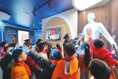11月20日,资阳市雁江区宝台镇黄泥小学三年级小学生集体参观了雁江区青少年活动中心禁毒警示教育基地。该基地是一个注重互动性、教育性和体验性的禁毒教育平台,让青少年通过活动、交流、模拟体验等方式了解毒品危害和拒毒方法,达到“警示性、教育性、趣味性”三位一体效果。图为讲解员正在讲解毒品对人体脏器的危害。 刘云涛 摄 |