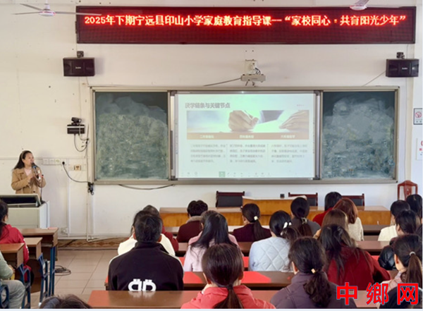 中乡网湖南讯 11月27日上午,宁远县印山小学举办2025年下期家庭教育指导活动,本次活动作为湖南省重点民生实事家庭教育指导服务“向阳花”行动的重要组成部分,特邀县教育局家庭教育讲师卢琳琳为二年级家长带来专题分享,围绕心理健康、手机管理、科学育儿等核心话题,搭建家校共育桥梁。