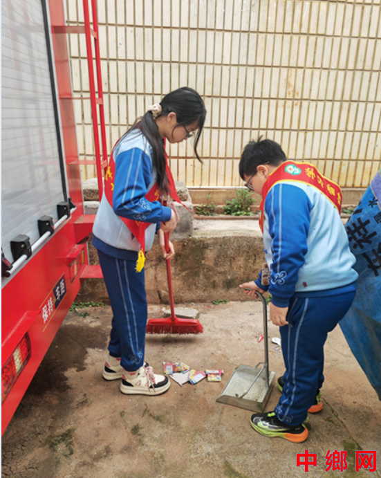 ![]() 少先队员们走进社区打扫卫生