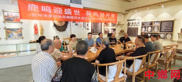 7月2日,在彭州市政协原副主席、市老科协荣誉会长陈德友的 带领下,彭州市老科协书画院组织十位书画家携手彭州市周边的什邡市青世龙等四位书画家,深入彭州市桂花鹿坪社区开展写生创 作交流活动。两市书画家们放眼鹿坪皓皓 荷塘,赏阳光下竞放荷花,即兴创作了20余幅书画作品,并郑重捐赠给桂花镇鹿 坪社区。