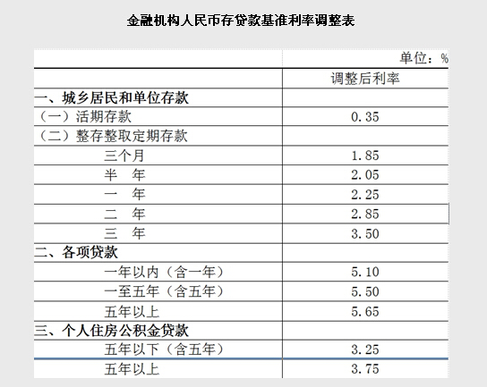 新华网消息 根据中国人民银行网站消息,自2015年5月11日起下调金融机构人民币贷款和存款基准利率。金融机构一年期贷款基准利率下调0.25个百分点至5.1%;一年期存款基准利率下调0.25个百分点至2.25%,同时结合推进利率市场化改革,将金融机构存款利率浮动区间的上限由存款基准利率的1.3倍调整为1.5倍;其他各档次贷款及存款基准利率、个人住房公积金存贷款利率相应调整。 |