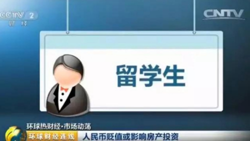 有房产的人们资产或将缩水。有一个“巧合”:人民币持续升值的9年,也是中国房地产价格持续上涨的9年,拥有房产的人资产也迅速升值。房产升值的预期,又激发了更多人买房的欲望。而人民币贬值,就会有投资者担心,会有资产撤出房产,尤其是那些早期从海外涌入国内的资金,会因人民币贬值而流出中国,或不敢再轻易进入中国市场,多种作用助推国内住房资产价格下跌。 3第三类:留学生 人民币急跌增加赴美留学费用