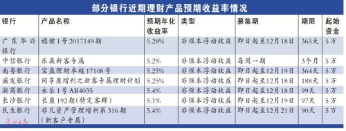 进入年末,银行理财产品收益率如期出现翘尾,预期收益率超过5%的银行理财产品很容易就能买到。 据融360监测的数据显示,本周银行理财产品平均预期年化收益率为4.79%,再创年内新高。而上周银行非保本理财产品平均收益率为年内首次突破5%。 文、表:广州日报全媒体记者林晓丽 近期银行理财产品收益率节节攀升。据融360监测的数据显示,本周(12月8日~12月14日)银行理财产品平均预期年化收益率为4.79%,较上周上升了0.03个百分点,再创今年新高。而上周银行非保本理财产品平均收益率为年内首次突破5%。 平均收益率创两年多新高 某股份制银行昨日新上架的几款理财产品,5万元认购门槛以上的年化收益率达到了5.4%,收益率都比上一期高了0.1个百分点,不过只针对新客户。 另一家股份制银行的理财经理也表示,目前有一款91天低风险理财,11月末将收益率从原来的4.8%调整到了现在的5.2%。 融360监测的数据显示,11月,银行理财产品发行量共13820款,较10月份增加30.22%;平均预期年化收益率为4.68%,较10月份上升了0.05个百分点,创下2015年9月以来的最高值。 而进入12月,银行理财产品收益率继续创新高。从不同收益类型理财产品来看, 本周保证收益类理财产品平均预期收益率为4.26%,保本浮动收益类理财产品为4.27%,非保本浮动收益类理财产品为5.03%。据了解,这是今年以来非保本理财产品平均收益率首次突破5%。 理财收益率或将持续上行 近期,市场资金面在跨年、美联储加息等因素的扰动下,的确存在收紧压力。 融360理财分析师李万斌指出,从shibor利率来看,近期隔夜、一周的资金价格持续下跌,一个月及更长期资金价格则持续上涨。正如央行所指,目前短期资金面宽松程度尚可;而从较长期限来看,仍对资金面的宽松程度比较担忧。且从往年历史情况来看,12月份的资金也一般偏紧。 近日,中国央行全线上调货币市场操作利率,均较前次操作上调5个基点。某股份制银行相关人士认为,央行此次上调操作利率,一方面是为了应对国际资本市场变动,另一方面与岁末年初银行体系流动性偏紧不无关系。 李万斌认为,从资金投放量和资金利率成本来看,12月份的资金面都不宽松,再加上临近年末,银行的资金流动性一般比较紧张,12月收益率或将持续上行。 李万斌指出,从个人的角度来说,年底个人支出也比较多,资金流动性需要比较高。考虑到存在利率上行的可能,明年银行理财产品收益可能更高。 Tips:投资技巧 一 收益率超过5.5%的产品谨慎购买 11月17五部门联合发布了《关于规范金融机构资产管理业务的指导意见(征求意见稿)》(下称《意见稿》),其中规定金融机构应当打破刚性兑付。 李万斌表示,资管新规离正式实施还有一年半左右的过渡期,投资者短期内仍可按过去方法购买理财产品。而之前购买的银行理财产品,即使还未到期,也不会受到影响。 李万斌表示,固定收益类且风险等级为R1及R2的理财产品一般情况下都能达到预期最高收益率,即使为非保本银行理财产品,收益达标率也在99%以上。可优先选择股份制银行或者规模较大的城商行,这些银行收益率相对较高。 不过,收益率超过5.5%的理财产品不太适合普通投资者购买,这类理财产品大多具有以下三点特征:一是结构性理财或浮动收益理财,高收益未必能达到;二是长期理财产品,比如2~3年,流动性太差;三是高净值客户或私银客户理财,门槛太高。 新规落地后,消费者在选购时严格区分保本型银行理财产品和非保本型银行理财产品。 二 目前可优先选择封闭式产品 “目前可优先选择封闭式产品。”李万斌说,封闭型、有预期收益率的银行理财产品仍是主流,净值型理财产品的总体发行比例不高,发行银行主要是国有银行和股份制银行。由于净值型理财产品的整体收益要低于封闭式理财,而且投资人在购买时没法有收益的预期,所以一般银行理财客户不太愿意接受净值型产品。 “但长期理财习惯和思维需要改变。首先要提高风险防范意识,要有自负盈亏的意识;第二,尝试净值型理财,净值型理财大多是半开放式的,在约定的时间段可以随时赎回;第三,净值型理财有一定的手续费,为0.1%或0.05%,频繁买卖不划算。此外,建议购买风险等级为2级的净值型理财产品,虽然名义上不保本,但是本金亏损的概率极低。”李万斌指出。 三 短期理财冲击尚未显现 《意见稿》规定封闭式资管产品最短期限不得低于90天,意味着短期银行理财的时代即将结束。但统计显示,本周3个月以内的短期限产品总发行量超三成。 记者从多家银行了解到,资管新规的规定目前尚未落实到具体产品上。“我们行目前3个月以内的理财都还在正常销售,没有接到总行方面的正式通知。包括1个月、3个月等短期限产品没有说要停发,少发。”某股份制银行广州分行相关人士告诉记者。 由于看涨明年利率,李万斌建议,近期投资者可购买一些期限较短的理财产品,以及时获益。 |