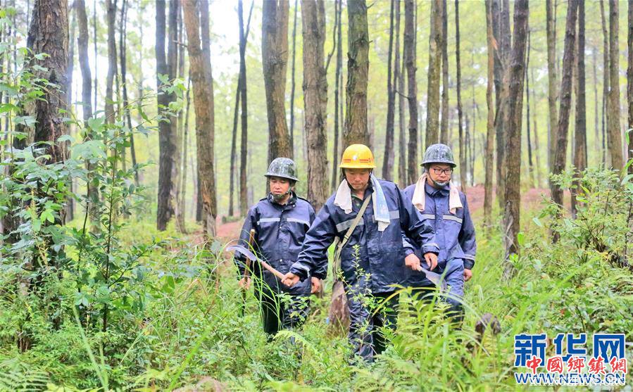 7月31日,符声强(中)和同事们用随身携带的刀具清出巡山的路。今年38岁的“绿林好汉”符声强,是位于江西省吉安市永丰县的古县林场的一名护林员,从事护林工作已有20余年。他的主要工作是通过巡护和宣传,防止偷砍盗伐、森林火灾等情况。多年来,符声强和同事们一年四季以森林为家,寒暑不惧,风雨无阻,守护着林场。 新华社发(刘浩军 摄) |