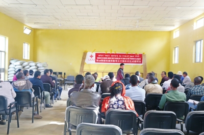 王力给当地技术人员、农民进行食用菌栽培技术培训。