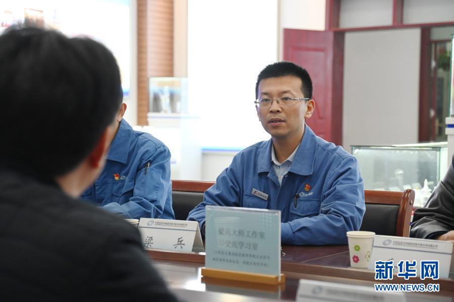 11月26日,梁兵在河南平原光电有限公司车间内为工作室成员讲解操作要点。新华社记者 张浩然 摄 下午2点,本厂同事、“全国青年岗位能手”魏金龙来找梁兵请教。“他是我们的榜样和指路明灯。”魏金龙说,刚从技校毕业时,很迷茫,了解梁兵的事迹后,坚定了选择。 “他常带我们去北京参加国际机床展,长了很多见识。”2014年被选入梁兵工作室的张建军说。 作为工作室的带头人,梁兵负责解决生产一线的疑难杂症,总结推广绝招绝技,培养优秀人才;作为全国人大代表,他常去一线倾听职工心声,为产业工人队伍建设建言献策;作为河南工业职业技术学院的客座讲师,他鼓励学生学习工匠精神,为中国制造崛起而努力。