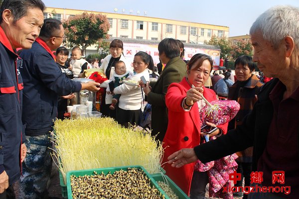中乡网安徽讯 各位父老乡亲大家好,“先尝后买,知道好歹” 。我公司向广大群众推出无土、无肥、无农药栽培的有机农产品花生芽、香椿芽、豌豆芽、空心菜等等10多个产品。10月27日,安徽省农业发展有限公司三分地工作人员利用逢集日,将自己生产有机农产品已展销形式,向过往行人进行大力宣传推广销售特色产品,提供给群众无偿品尝,以此助力增收。图为安徽省界首市芦村镇群众在芦村集参观品尝有机农产品菜芽。(特约通讯员:穆从田)