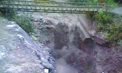 8月17日,川藏线318国道通麦至鲁朗段,排龙沟钢架桥桥墩被山洪冲毁一瞬。