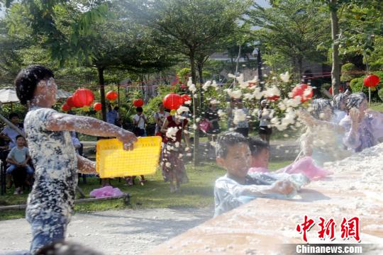 游人们互抛豆腐玩得不亦说乎 曾令华 摄