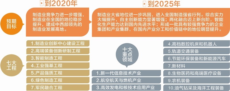 四川在线消息(四川日报记者 董世梅 吴璟)为积极落实《中国制造2025》战略部署,日前,我省正式印发《中国制造2025四川行动计划》明确建成制造强省的“时间表”和“路线图”。《行动计划》提出,到2020年,我省制造业竞争力进一步增强,制造业在全国的地位稳步提升,建成中西部领先的制造业发展高地;到2025年,制造业大省地位进一步巩固,进入全国制造强省行列。 近年来,我省制造业总体规模不断扩大、整合实力显著增强,形成了七大优势产业支撑有力、七大战略性新兴产业不断壮大、五大高端成长型产业加速发展的产业梯次发展体系。但与发达省市相比,我省制造业不大不强、不优不精的特征仍较突出,转型升级和跨越发展的任务繁重。 《行动计划》提出,要以制造业转型升级和提升核心竞争力为主题,以信息技术与制造业深度融合为主线,以智能化、绿色化、服务化为发展方向,坚持创新驱动、改革促动,坚持增量与存量并重、速度与质效并举,强化技术改造,优化投资结构,同步提升制造业科技贡献率、劳动生产率、产业增加值率,实现信息化普及、智能化转型、高端化突破,将我省建设为全国重要的重大技术装备研制、信息技术研发和产品制造、战略资源精深加工、名优特新消费品研发制造基地,率先建成西部制造强省和“中国制造”西部高地。 为实现我省制造业转型升级,《行动计划》锁定了十大任务、七大工程和十大重点领域突破发展—— 十大任务方面,我省提出提高四川制造业自主创新能力、加快信息化与工业化深度融合、提升四川制造业基础能力、加强质量品牌建设、全面推行绿色制造、提升军民融合发展水平、加快推进重点领域突破发展、深入推进制造业结构调整、积极发展服务型制造和生产性服务业、提高制造业开放发展水平等。为实现十大任务,我省也将配套实施制造业创新中心建设、高端装备创新研制、智能制造、工业强基、产品强质、绿色制造、军民融合等七大工程。 在充分对接国家重点发展的十大高端领域基础上,我省充分考虑优势产业、战略性新兴产业和五大高端成长型产业的发展基础和推进需要,提出在新一代信息技术产业、航空航天与燃机产业、高效发电和核技术应用产业、高档数控机床和机器人、轨道交通装备、节能环保装备和新能源汽车、新材料、生物医药和高端医疗设备、农机装备、油气钻采及海洋工程装备等十大领域实现重点突破。 保障措施方面,《行动计划》提出,将深化体制机制改革、加大财税政策支持力度、完善金融扶持政策等。下一步,还将成立四川省建设制造强省领导小组,统筹推进制造强省战略,协调解决规划实施过程中的重大问题;建立制造强省战略实施的统计监测、绩效评估、动态调整和监督考核机制,推动规划顺利实施。 据悉,推进《行动计划》的相关重点任务和工程分工方案也同步印发。 |
