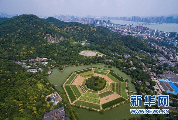 空中俯瞰美丽的杭州八卦田(2015年9月8日摄)。 新华社记者 徐昱 摄