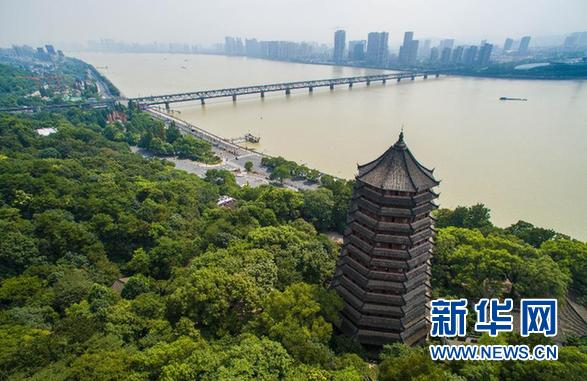 空中俯瞰美丽的杭州六和塔与钱塘江(2015年9月17日摄)。 新华社记者 徐昱 摄