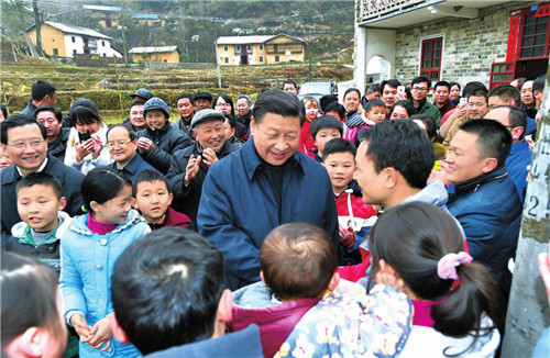 2015年6月16日,习近平来到贵州遵义市枫香镇花茂村考察。他看到鲜花盛开,道路两旁的房子干净整洁,有感而发地说:“怪不得大家都来,在这里找到乡愁了。”(中国网/中国发展门户网魏博 摄) 花茂村为了摆脱贫困,建立了“红色之家”农家乐,为165户贫困户建档立卡,找准贫根,同时,建立300亩高效农业园区,发展高效特色农业,引导村民积极发展乡村旅游、推进农旅一体化,经过一系列政策鼓励,花茂村农村居民人均可支配收入由2012年的6478元预计增加到2015年的12607元,贫困人口剩余25人2016年可全部脱贫。 六 2016年春节即将来临之际,习近平来到江西井冈山市茅坪乡神山村进行考察。神山村山高路远、信息闭塞,是茅坪乡最贫困的村庄。村里壮劳力大多外出务工,留守老人和儿童的医疗、上学等需求,成为难题。 习近平指出,扶贫、脱贫的措施和工作一定要精准,要因户施策、因人施策,扶到点上、扶到根上,不能大而化之。总书记对群众说,在扶贫的路上,不能落下一个贫困家庭,丢下一个贫困群众。