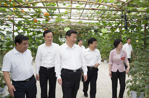 2015年6月16日下午,习近平在遵义县枫香镇花茂村视察现代高效农业智能温控大棚。(新华社记者 黄敬文 摄) 习近平在调研期间强调,党中央制定的政策好不好,要看乡亲们是哭还是笑。要是笑,就说明政策好。要是有人哭,我们就要注意,需要改正的就要改正,需要完善的就要完善。好日子是干出来的,贫困并不可怕,只要有信心、有决心,就没有克服不了的困难。