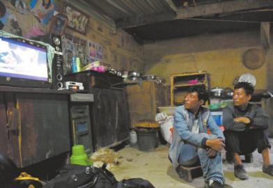 5月26日,村民在家中看电视。虽然山高路险,但是当地人能通过电视和手机保持与外界的联系。